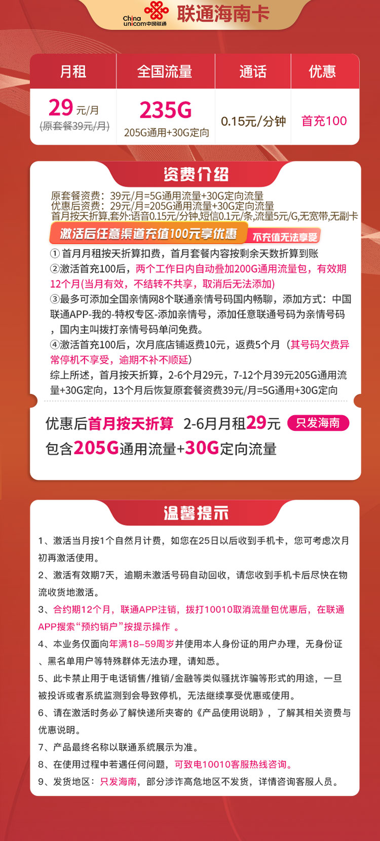 注意事项:以下问题会导致运营商发货不成功,客户收不到流量卡,请大家一定要注意: 1.身份证号码错误(姓名身份证号码不符,号码输入有误)。 2.请大家一定要认真看阅不发货地区(在不发货地区内的用户无法申请该套餐,请选择其它可选套餐)。 3.证件号码购买同一销售品超过数量(同一身份证只能申领一种套餐卡,不能重复申领相同套餐的卡)。 4.地址不详细(具体要详细的街道)。5,用户鉴权涉诈和黑名单校验不通过。6,开卡失败:国政通身份校验不通过。