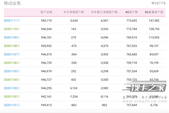 摘要:中国移动今日公布2020年11月份运营数据,当月,中国移动移动客户数净减263.4万户,用户总数达到9.4371亿户。