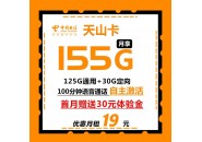 电信天山卡 19月租包155G流量+100分钟通话 【自主激活】