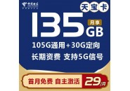 电信29元135G流量卡限时回归,电信天宝卡套餐详情介绍!
