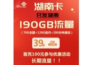湖南联通卡,39元190G流量+200分钟的长期卡来了!