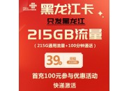 黑龙江联通套餐,月租39元包含215G通用流量+100分钟通话!