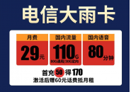 29元110g流量,电信大雨卡29元110g免费办理链接
