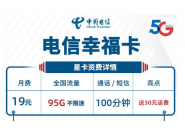 电信幸福卡套餐:19元月租95G流量+100分钟通话