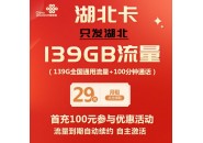 湖北专属流量卡,29元135G+100分钟长期流量卡套餐