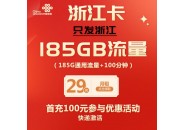 联通29元套餐浙江版,29元185G通用流量+100分钟通话!