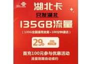 湖北联通流量卡套餐,29元135G通用流量+100分钟通话!