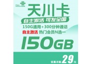 联通流量卡!联通天川卡来了,29元150G通用+300分钟