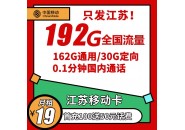 江苏移动卡 19元月租162G通用流量+30G定向流量 【只发江苏】商品详情