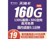 电信天海卡 19元160G全国流量 首月免费商品详情
