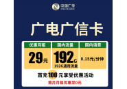 广电神卡突袭:广龙卡29元包192G通用流量192分钟通话+流量到期可续约