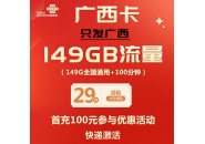 广西归属地流量卡来了,29元149G通用+100分钟...
