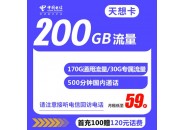 电信天想卡申请,电信天想卡59元200G资费介绍