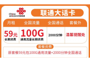 联通59元100g流量+2000分钟,联通卡59元套餐介绍