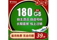 电信大山卡39元套餐介绍,180G全国流量+20年长期...